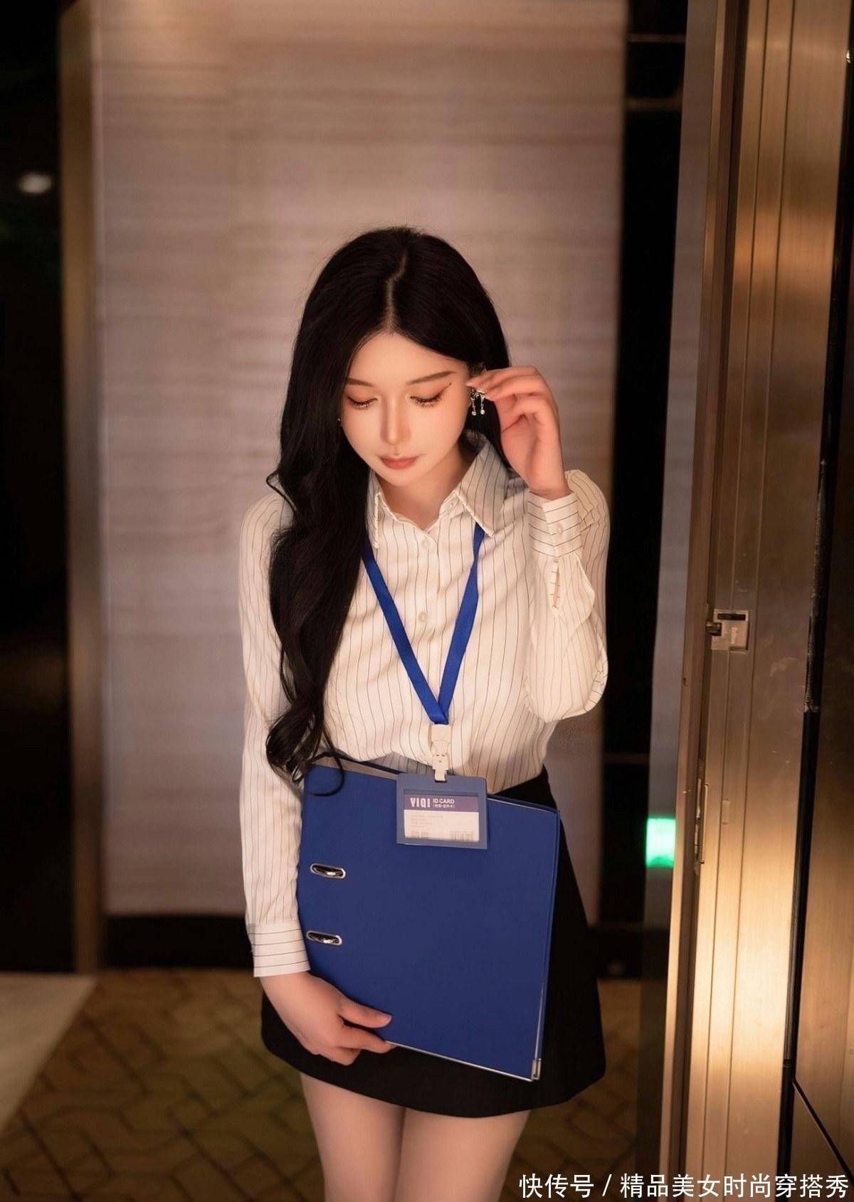 美女模特林珊珊,条纹衬衫配黑色伞裙摆脱职场沉闷,这样的穿搭怎能不爱?